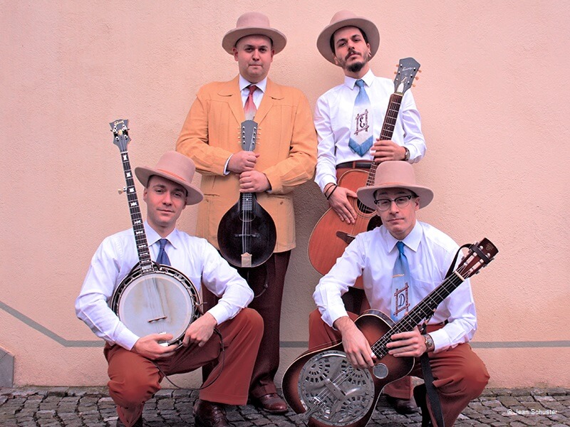 Rund um ein Retro-Mikrofon inszenieren sie eine choreografierte Bühnenshow voller Dynamik und Humor, die an Saloon-Auftritte im Hillbilly-Country erinnert. Mehrstimmiger Gesang wie von einer alten Schallplatte, präzise Instrumentaltechnik und stilvolle Retro-Kleidung schaffen ein unvergessliches Erlebnis. Das findet selbst in den USA Anerkennung.