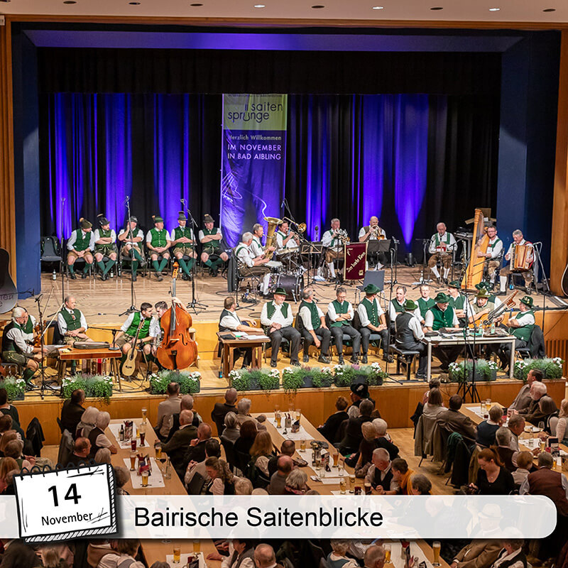 - Bairische Saitenblicke (D, AUT): Karwendelhütt’n Musi, Hollerschnapszuzler, Sagschneider Sängerinnen, Bairer Saiten- und Fleitlmusi, Steirische Blas, Sprecher: Bernd Prettenthaler